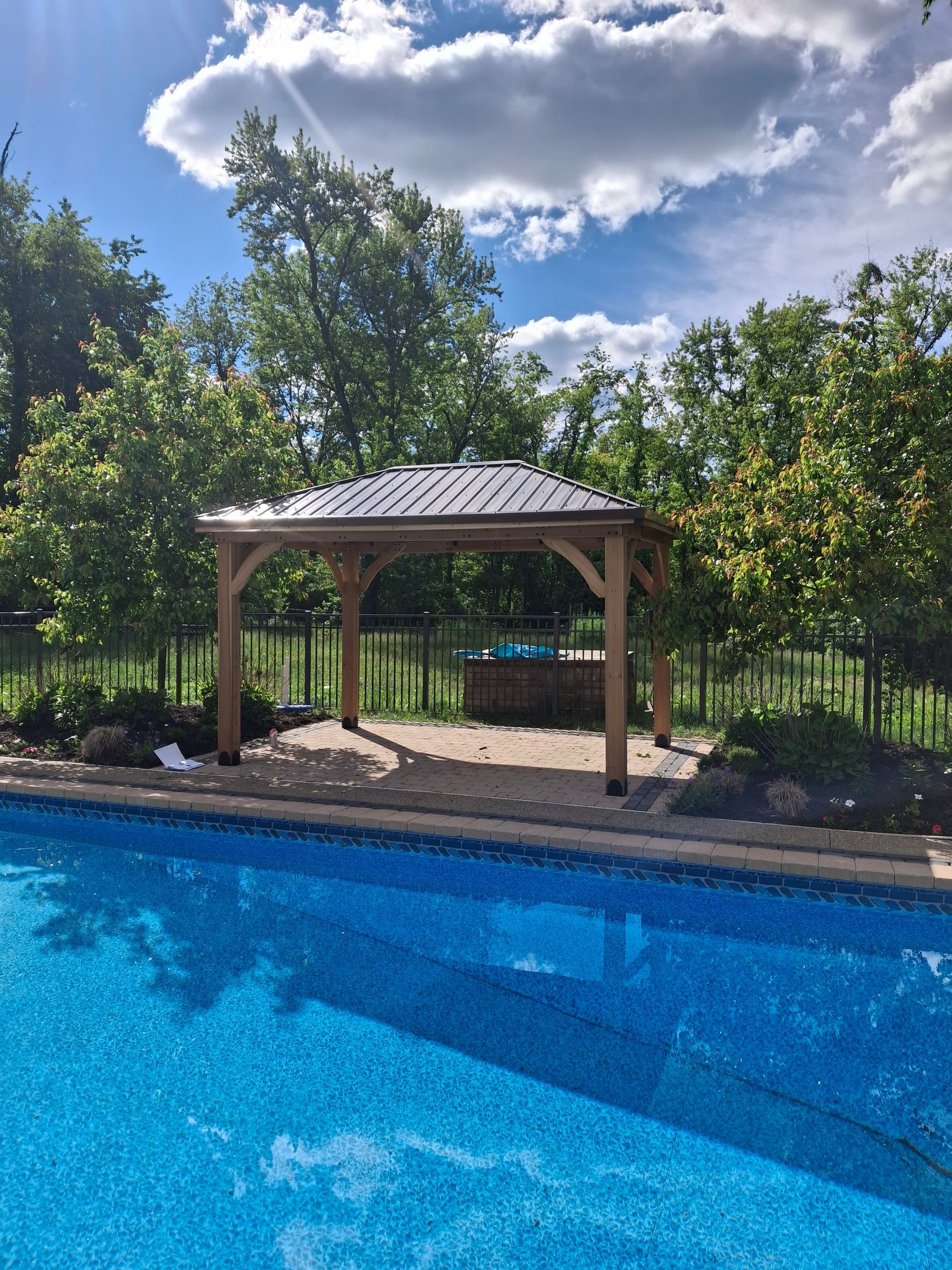 This 10x14 gazebo is perfect for enhancing your backyard oasis. Whether situated on the back patio or by the pool, it provides a refreshing retreat for relaxation. Other sizes available: Call for pricing.